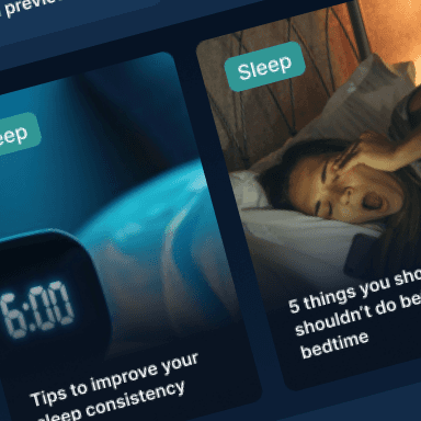Access personalised tips, videos, and expert-led articles tailored specifically to your scores and daily activity. These curated insights are designed to support your progress, helping you build better habits, improve your sleep quality, and enhance your overall health and fitness—so you can feel and perform at your best every day.